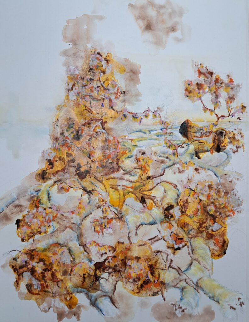 Untitleld, mixed media on paper, 100x70cm, 2023
